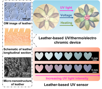 基于皮革的微納孔洞結(jié)構(gòu)構(gòu)筑的對紫外光、電、熱多響應(yīng)變色材料