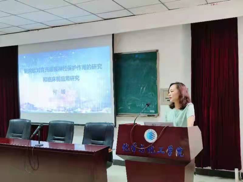 首先,何媛教授對青光眼疾病的出現(xiàn)、治療和預(yù)防進(jìn)行科普,從數(shù)據(jù)的收集、跟蹤及分析,到手術(shù)干預(yù)治療,再到靶向肽對青光眼神經(jīng)保護(hù)作用的講解,深入地介紹了青光眼疾病的開角型青光眼發(fā)病機(jī)理、視網(wǎng)膜神經(jīng)再生與保護(hù)、表觀遺傳學(xué)研究等領(lǐng)域。會后何教授跟與會老師及研究生就科學(xué)研究工作進(jìn)行了深入交流與討論。此次報告為促進(jìn)學(xué)科建設(shè)、加強(qiáng)院校部門合作提供了新思路。