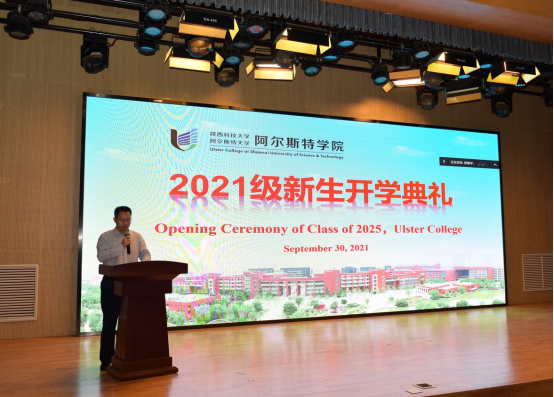 9月30日,阿爾斯特學(xué)院2021級新生開學(xué)典禮舉行。陜西科技大學(xué)副校長、阿爾斯特學(xué)院院長蒲永平,阿爾斯特學(xué)院黨政班子成員、任課教師代表以及2021級全體新生出席典禮。受新冠肺炎疫情影響,阿爾斯特大學(xué)校長Paul Bartholomew、計(jì)算機(jī)、工程與建筑環(huán)境學(xué)部副部長Paul Hanna以視頻連線的方式向新同學(xué)的到來表達(dá)了歡迎。典禮由阿爾斯特學(xué)院常務(wù)副院長薛朝華主持。