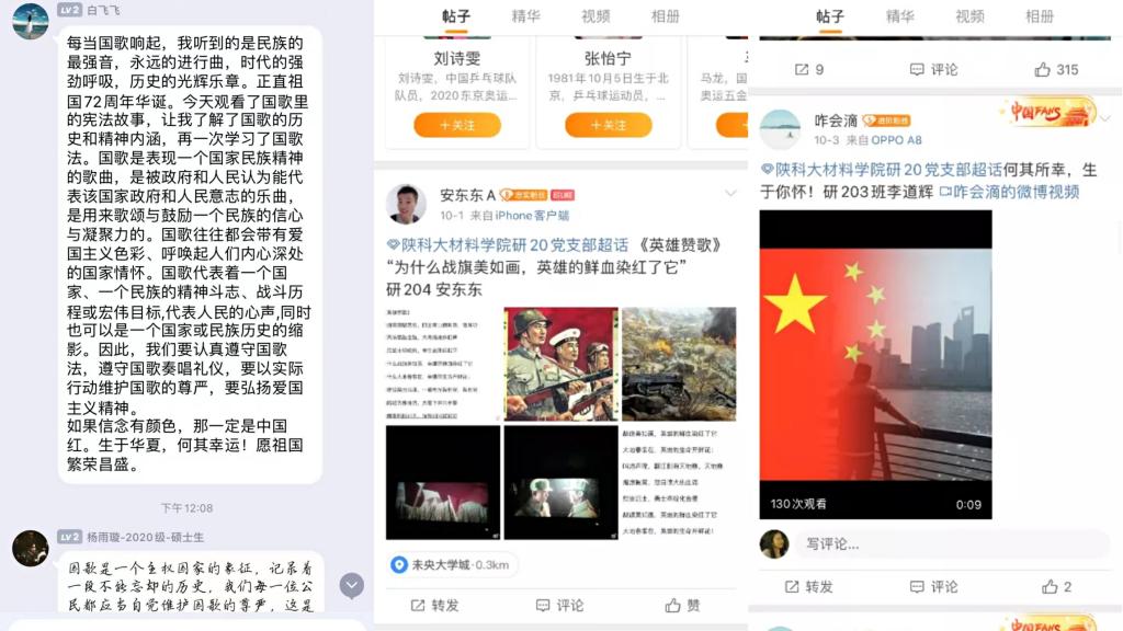 學(xué)習(xí)黨史國(guó)史 傳承紅色基因。研究生各黨支部積極響應(yīng)研工部號(hào)召,統(tǒng)籌線上線下, 開展了“學(xué)習(xí)黨史國(guó)史、傳承紅色基因"主題黨日活動(dòng),引導(dǎo)全體黨員共抒愛國(guó)情懷、共話祖國(guó)新貌、共享國(guó)慶喜悅,抒發(fā)廣大研究生黨員表白祖國(guó)、祝福祖國(guó)的熱烈情感。