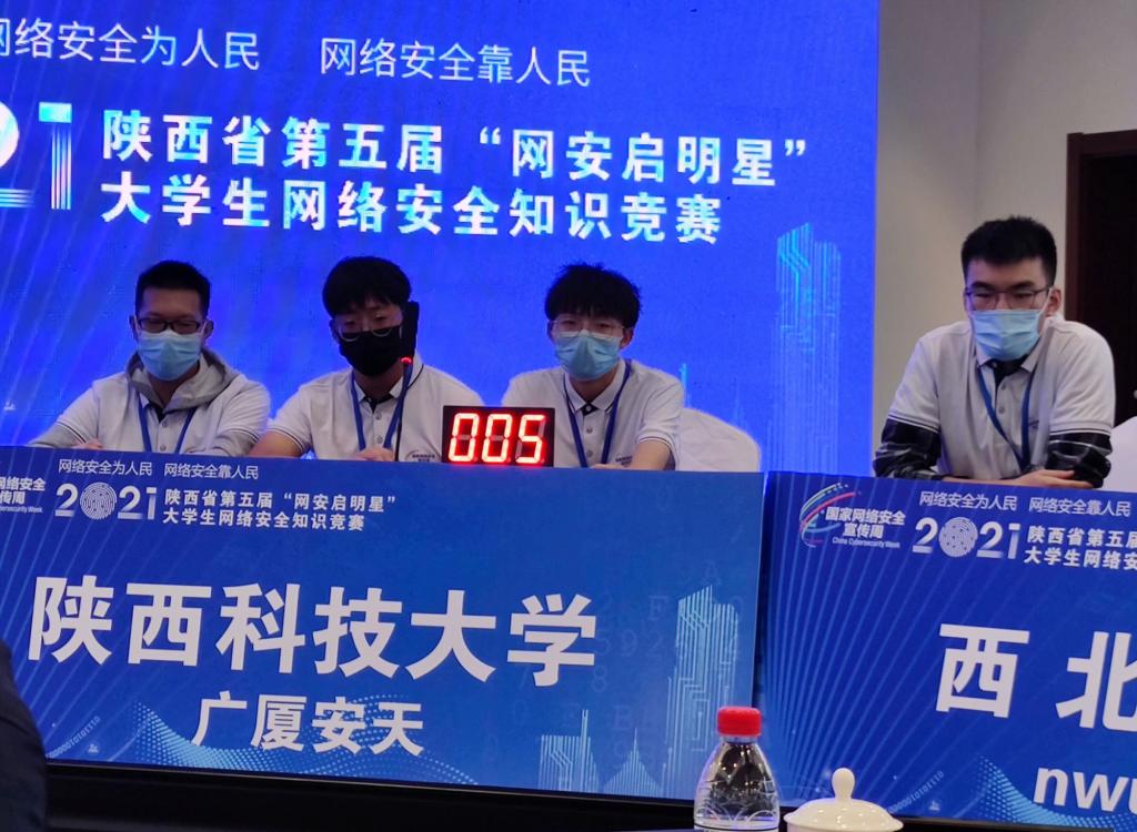 同時我校也組織“廣廈天安”戰(zhàn)隊參加了陜西省第五屆“網(wǎng)安啟明星”大學(xué)生網(wǎng)絡(luò)安全知識競賽,競賽隊一路過關(guān)斬將,最終獲得了大賽三等獎。