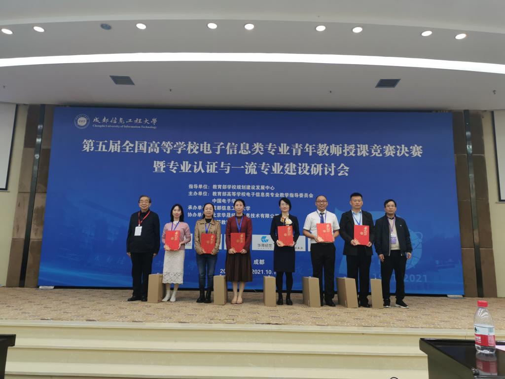 10月15日-17日,第五屆全國(guó)高等學(xué)校電子信息類專業(yè)青年教師授課競(jìng)賽決賽在成都舉辦,我校電子信息與人工智能學(xué)院青年教師王進(jìn)軍經(jīng)過激烈角逐,最終斬獲全國(guó)決賽一等獎(jiǎng),我校獲優(yōu)秀組織獎(jiǎng)。