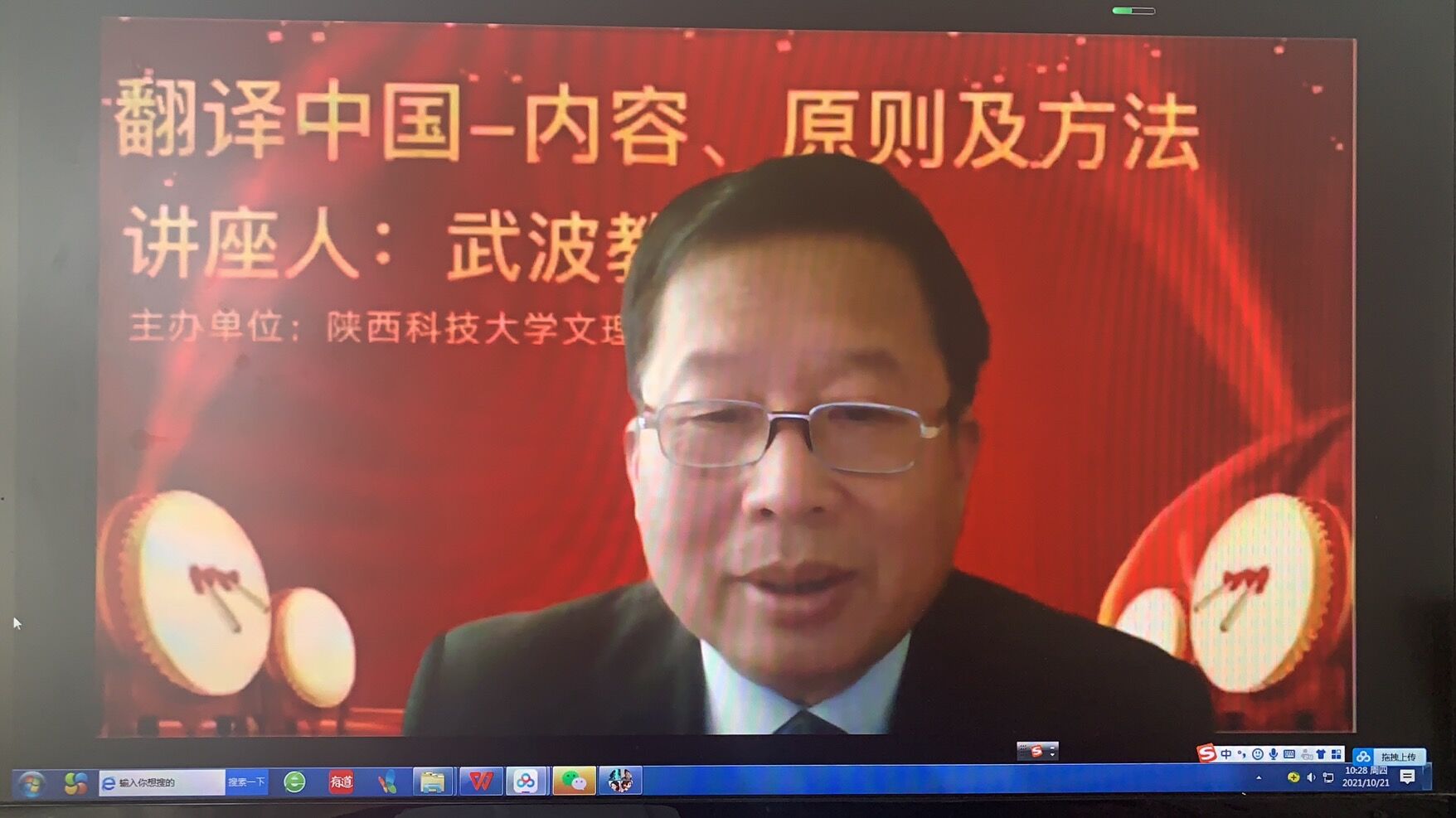 10月20日下午,外交學(xué)院英語系武波教授應(yīng)邀作了題為“翻譯中國—內(nèi)容、原則及方法”的線上講座。講座由文理學(xué)院副院長李穩(wěn)敏主持,外語系師生聆聽了此次講座。