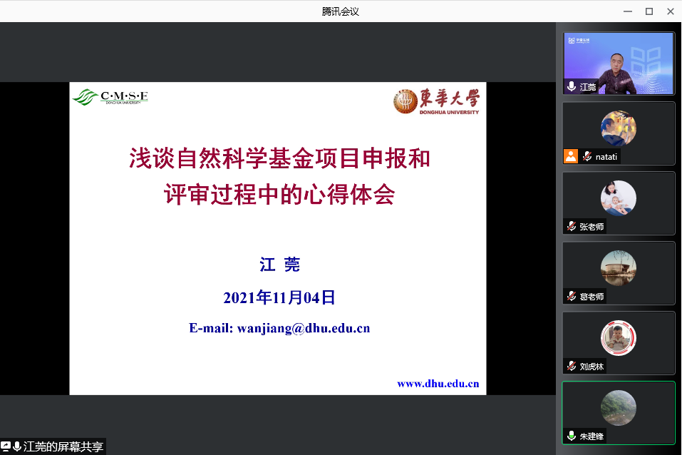 11月3日上午,應(yīng)我校材料科學(xué)與工程學(xué)院邀請,東華大學(xué)江莞教授做客我校“前沿科學(xué)論壇”,通過騰訊會議作了題為“淺談自然科技基金項目申報和評審過程中的心得體會”的報告。報告由材料學(xué)院院長朱建鋒主持,材料學(xué)院部分教師、研究生參加了此次學(xué)術(shù)報告會。