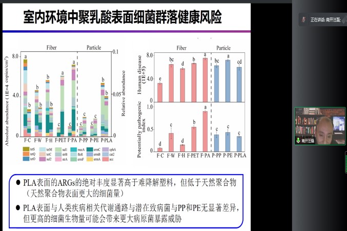 汪磊教授作了題為“環(huán)境微塑料的檢測方法開發(fā)與應(yīng)用”的學(xué)術(shù)報告,主要介紹了環(huán)境微塑料檢測技術(shù)的發(fā)展?fàn)顩r及其課題組在環(huán)境樣品中微塑料的檢測方面取得的研究進展。通過開發(fā)一種化學(xué)解聚耦合質(zhì)譜檢測的微塑料定量方法可在無需分離微塑料的條件下完成微塑料定量,且定量限低、廣泛適用各種環(huán)境樣品。應(yīng)用此類方法,汪磊教授團隊對微塑料不同界面相間輸送通量、微塑料環(huán)境暴露特征、以及納米塑料的環(huán)境賦存等問題進行了研究。