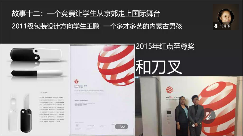 劉教授從“怎樣把實踐有機的融入課程”這一點著手,講述了視覺傳達專業(yè)的培養(yǎng)模式與課程設(shè)置。劉教授認為在人才培養(yǎng)模式方面,要改變以往的不定向的人才培養(yǎng),強調(diào)“有目的地培養(yǎng)人才”,要做到政府、企業(yè)、學校、研究、應(yīng)用等的各方面的結(jié)合,要充分發(fā)揮學校和企業(yè)的各自優(yōu)勢,提高學生自主學習的積極性與主動性。在課程設(shè)置上,劉教授講到北京印刷學院視覺傳達設(shè)計專業(yè)所有的課程都跟學科競賽有關(guān),每一門課程幾乎都對應(yīng)著相應(yīng)的比賽,在專業(yè)教師以及學生們的共同努力下,視覺傳達設(shè)計專業(yè)斬獲德國紅點至尊獎等多項國際大獎。