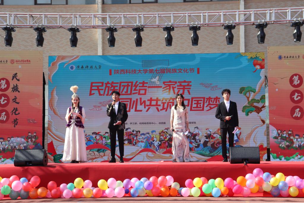11月12日,陜西科技大學各民族師生齊聚一堂,迎來第七屆民族文化節(jié)。本屆民族文化節(jié)由統(tǒng)戰(zhàn)部、學工部、校網(wǎng)絡思政中心、校團委主辦,經(jīng)濟與管理學院承辦。校黨委副書記郭強,相關職能部門負責人,陜西省二十余所高校新疆內(nèi)派教師,經(jīng)管學院黨政負責人以及各學院團學負責人與各民族同學共同品嘗民族美食、欣賞民族歌舞、體驗民族文化,共享視覺、嗅覺、味覺、聽覺交織一體的文化饕餮盛宴,展現(xiàn)科大最炫民族風。