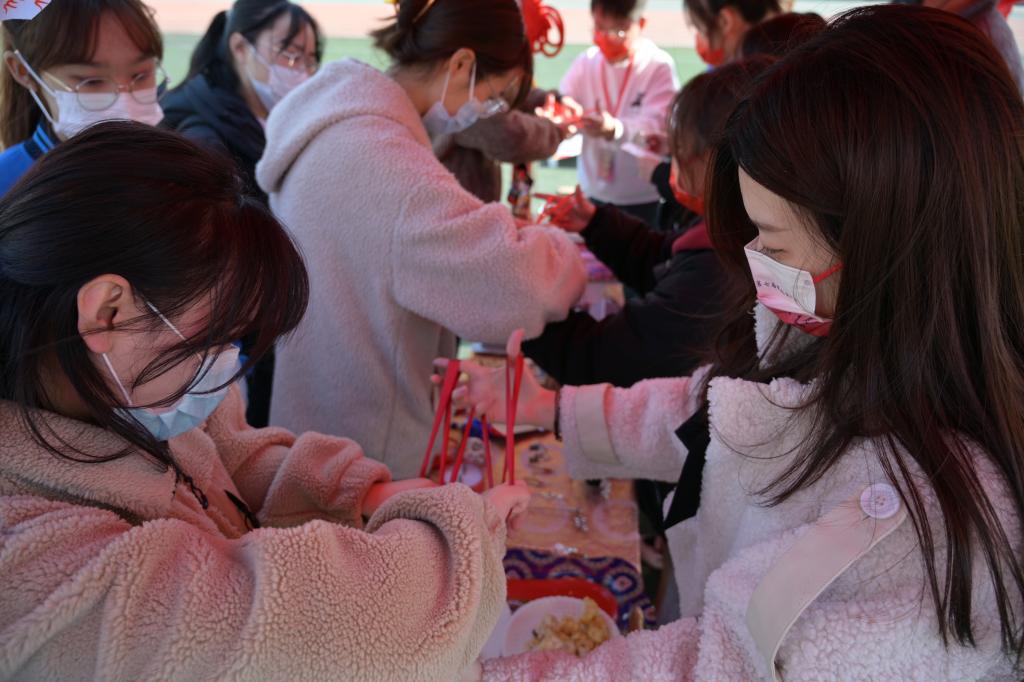 民俗風情展的節(jié)目有哈薩克族舞蹈《鮮花》、高山族歌曲《阿里山的姑娘》、維吾爾族歌舞《百靈鳥》等,在民族展示區(qū)內(nèi),各民族同學向大家介紹本民族的風俗習慣以及特色美食,展區(qū)內(nèi)有維吾爾族的手抓飯、烤羊肉、馕,藏族的風干牦牛肉、奶渣子,蒙古族的馬奶酒等各色美食,還有投壺、射箭、看名猜物、翻花繩、抽陀螺等民族趣味游戲,吸引了眾多同學參與其中。為慶祝建黨百年,特設“建黨百年·黨史知識我知道”項目,引導我校學子從黨的百年歷程中汲取智慧、堅定信心、凝聚力量,把愛黨愛國、堅韌不拔、勇往直前的精神落實到實際行動中。