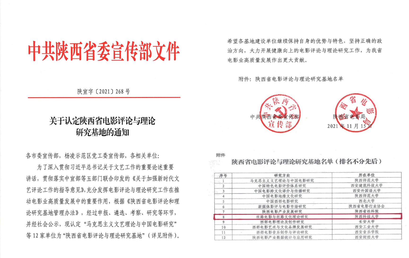近日,中共陜西省委宣傳部公布了首批“陜西省電影評論與理論研究基地”名單,由我校設計與藝術學院吉平教授作為首席專家申報的“絲路電影與絲路文化理論研究基地”成功入選。