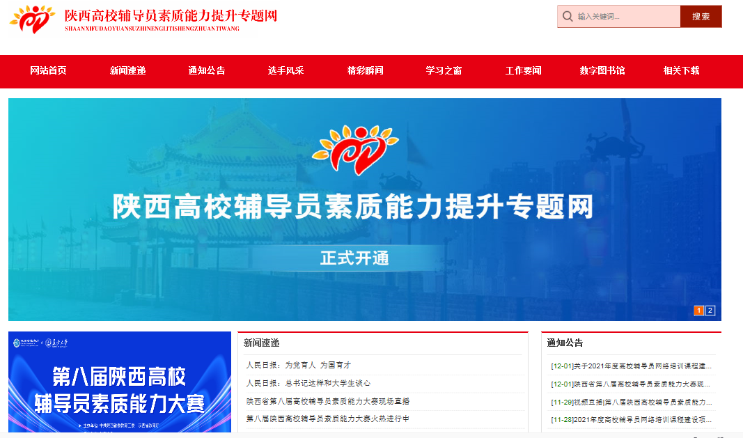 近日,陜西高校輔導(dǎo)員素質(zhì)能力提升專題網(wǎng)正式上線,該網(wǎng)站是按照陜西省委教育工委的工作要求,由我校具體負(fù)責(zé)承建的學(xué)習(xí)型、互動(dòng)性專題網(wǎng)站。網(wǎng)站共設(shè)8個(gè)一級(jí)欄目,內(nèi)容涉及輔導(dǎo)員素質(zhì)能力大賽選手風(fēng)采展示、輔導(dǎo)員數(shù)字圖書(shū)館、思政學(xué)習(xí)資料下載等,為高校輔導(dǎo)員提供了專業(yè)化學(xué)習(xí)成長(zhǎng)的“資料包”“素材庫(kù)”,也有效展示了我省、我校輔導(dǎo)員隊(duì)伍專業(yè)化、職業(yè)化建設(shè)的最新成果。