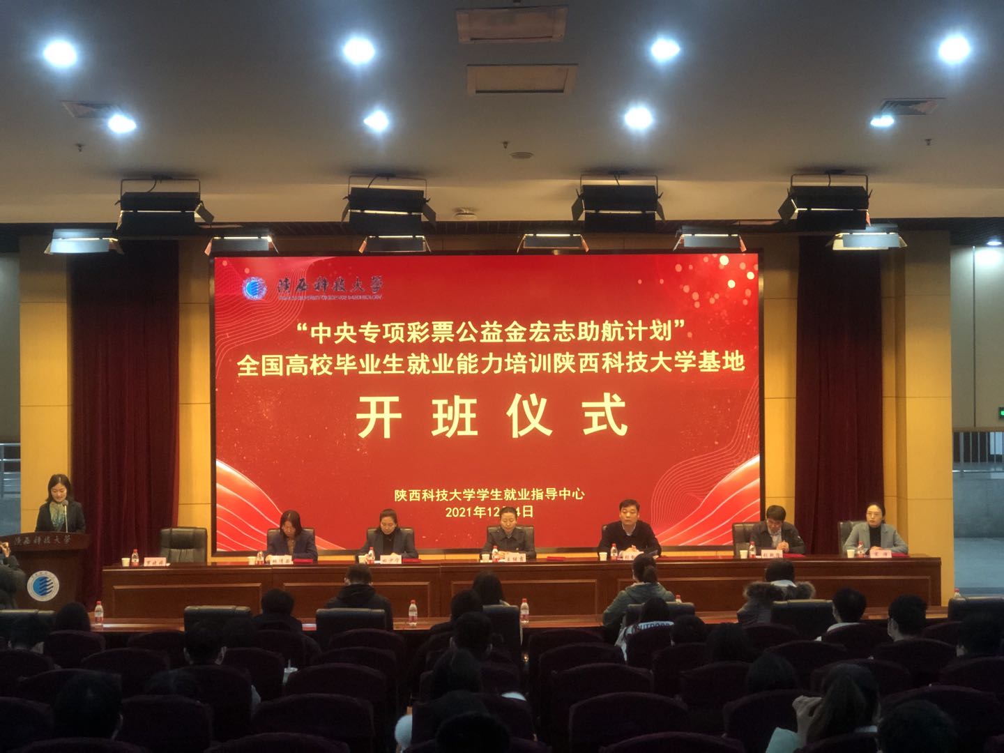 12月4日,陜西科技大學(xué)“中央專(zhuān)項(xiàng)彩票公益金宏志助航計(jì)劃”全國(guó)高校畢業(yè)生就業(yè)能力培訓(xùn)基地揭牌暨開(kāi)班儀式在圖書(shū)館一樓報(bào)告廳順利舉行。陜西省教育廳高校學(xué)生工作處副處長(zhǎng)王繼霞受邀出席儀式并為我?!昂曛局接?jì)劃——全國(guó)畢業(yè)生就業(yè)能力培訓(xùn)基地”揭牌,為授課教師代表頒發(fā)聘書(shū)。