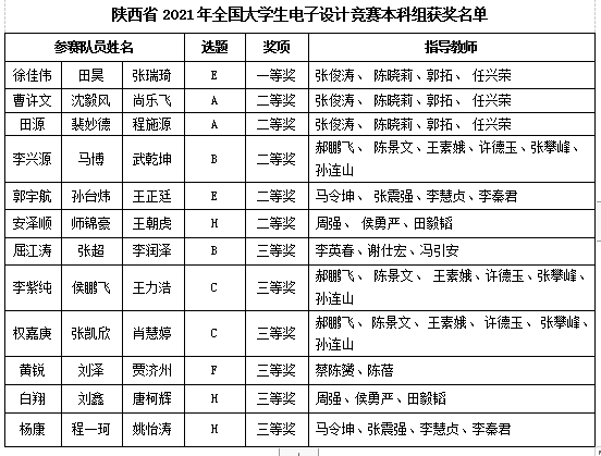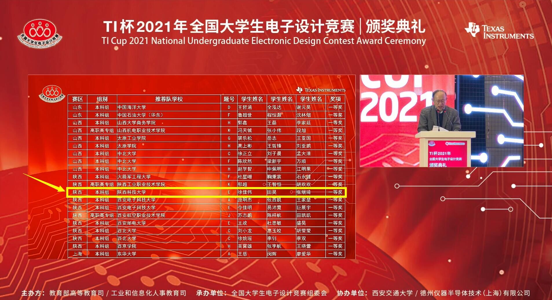 12月19日,TI杯2021年全國大學(xué)生電子設(shè)計競賽經(jīng)過省賽、國賽復(fù)測后成績最終揭曉,由于疫情防控的原因,頒獎典禮在西安交通大學(xué)采取線上線下相結(jié)合方式舉行。我校共有23支學(xué)生隊69名學(xué)生參賽,獲得全國一等獎1項,在省屬高校中僅次于西北大學(xué),位居第二。在陜西賽區(qū)競賽中,我校共獲省獎12項,其中一等獎1項,二等獎5項,三等獎6項,學(xué)校被陜西賽區(qū)組委會評為“優(yōu)秀組織單位”,張攀峰老師獲得“優(yōu)秀組織個人”獎。