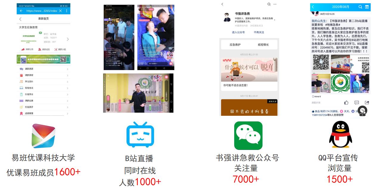 三是推進(jìn)活動載體多樣化,提升育人實(shí)效性。打造了“一體兩翼”育人載體平臺,即以線下應(yīng)急救護(hù)培訓(xùn)為主體,以微信公眾平臺、B站為兩翼,不斷豐富活動形式,擴(kuò)大活動覆蓋面。線下應(yīng)急救護(hù)培訓(xùn)主要依托陜西省紅十字會國家級救護(hù)師資、學(xué)校晨曦安全急救協(xié)會骨干成員定期開展應(yīng)急培訓(xùn)活動,活動內(nèi)容主要包括公寓骨干培訓(xùn)、校園急救教育講座、應(yīng)急演練等,累計(jì)開展35場次,覆蓋15000余人。值得一提的是,2020年、2021年學(xué)校連續(xù)兩年在新生軍訓(xùn)過程中開展急救教育培訓(xùn)活動,受到教育部門大力肯定。線上依托易班優(yōu)課、“書強(qiáng)”微信公眾平臺開展急救教育,開發(fā)易班精品視頻課程2套,發(fā)表原創(chuàng)網(wǎng)文50篇,累計(jì)參與量13萬,不斷推動急救教育取得實(shí)效。