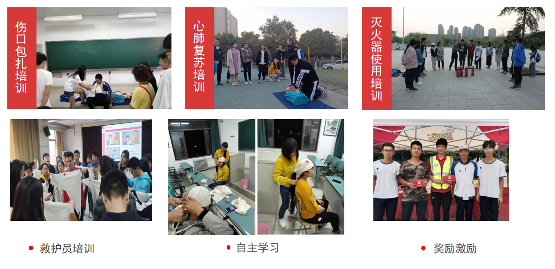 一是強(qiáng)化人才隊(duì)伍多元化,提升育人協(xié)同性。著力打造了一支“專兼結(jié)合、優(yōu)勢互補(bǔ)”的急救教育人才隊(duì)伍,不斷強(qiáng)化協(xié)同聯(lián)動育人。將急救教育課程納入學(xué)生安全教育計(jì)劃,依托省紅十字會、中國紅十字會總會在現(xiàn)有思政工作隊(duì)伍中培養(yǎng)了技能過硬、素質(zhì)出眾的國家級救護(hù)師資5名;充分發(fā)揮學(xué)工、保衛(wèi)等部門力量,在一線輔導(dǎo)員、保衛(wèi)人員、公寓管理員中深入開展應(yīng)急救護(hù)技能培訓(xùn),培養(yǎng)了一支頂?shù)蒙稀⒏傻孟碌募媛毤本冉逃?duì)伍;抓關(guān)鍵少數(shù),帶動絕大多數(shù),積極鼓勵學(xué)生社團(tuán)、志愿服務(wù)組織開展急救教育活動,在學(xué)校培養(yǎng)了一支300余名持有紅十字急救員證書的學(xué)生骨干隊(duì)伍,開展系列急救教育實(shí)踐活動,營造良好的急救教育文化氛圍。