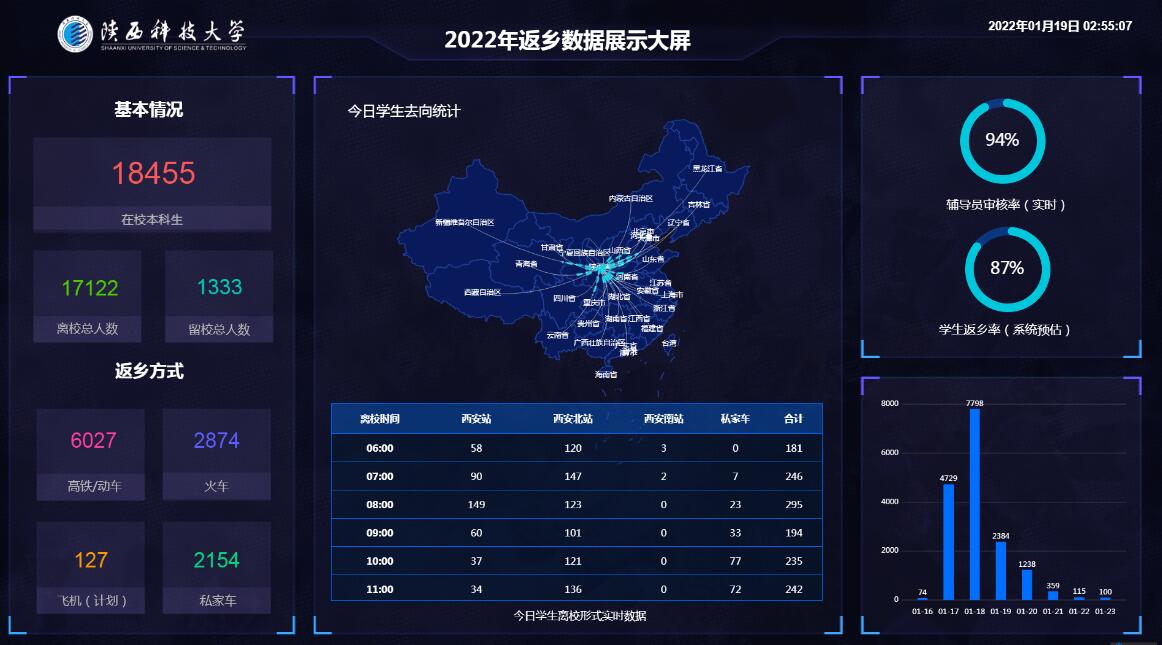 “老師,我們縣的車明天會來接我嗎?”“老師,我明天7點的火車,學(xué)校會幾點安排車送我呢?”“老師,我們新疆離得遠(yuǎn),學(xué)校能為我們聯(lián)系機(jī)場包機(jī)回家嗎?”類似這樣的問題,輔導(dǎo)員王一涵每天要被問到不下100次,她能做的就是及時告知同學(xué)們她所掌握的信息,當(dāng)好“信息統(tǒng)計員”,一遍一遍的核準(zhǔn)信息、及時審核上報,當(dāng)好“情緒疏導(dǎo)員”,對出現(xiàn)情緒波動的同學(xué)及時安撫疏導(dǎo)。在系統(tǒng)的另一端,組織部成立的10個工作專班迅速行動,實時對照系統(tǒng)信息聯(lián)系省內(nèi)11個地市、107個區(qū)縣,重點是陜南、陜北等火車不能到達(dá)的區(qū)縣,專班成員每天的通話記錄都在200條以上,這才有了大家所看到的每天來自全省各區(qū)縣的大巴車,源源不斷的來到學(xué)校,精準(zhǔn)的接上每一名同學(xué)。學(xué)工部田少寧與藏曉輝、張蕓、曲江月等3位專班成員,按照同學(xué)們離校的時段和人流量,安排送站車輛、協(xié)調(diào)運力,上萬人不同目的地的出行,既要不能讓“車等人”,也不能讓“人等車”,還得符合防疫要求,同學(xué)們出行的信息又隨著目的地政策的變化隨時在變,調(diào)度工作起來談何容易,為此專班成員們每天從早到晚電話響個不停,通宵達(dá)旦更是家常便飯。