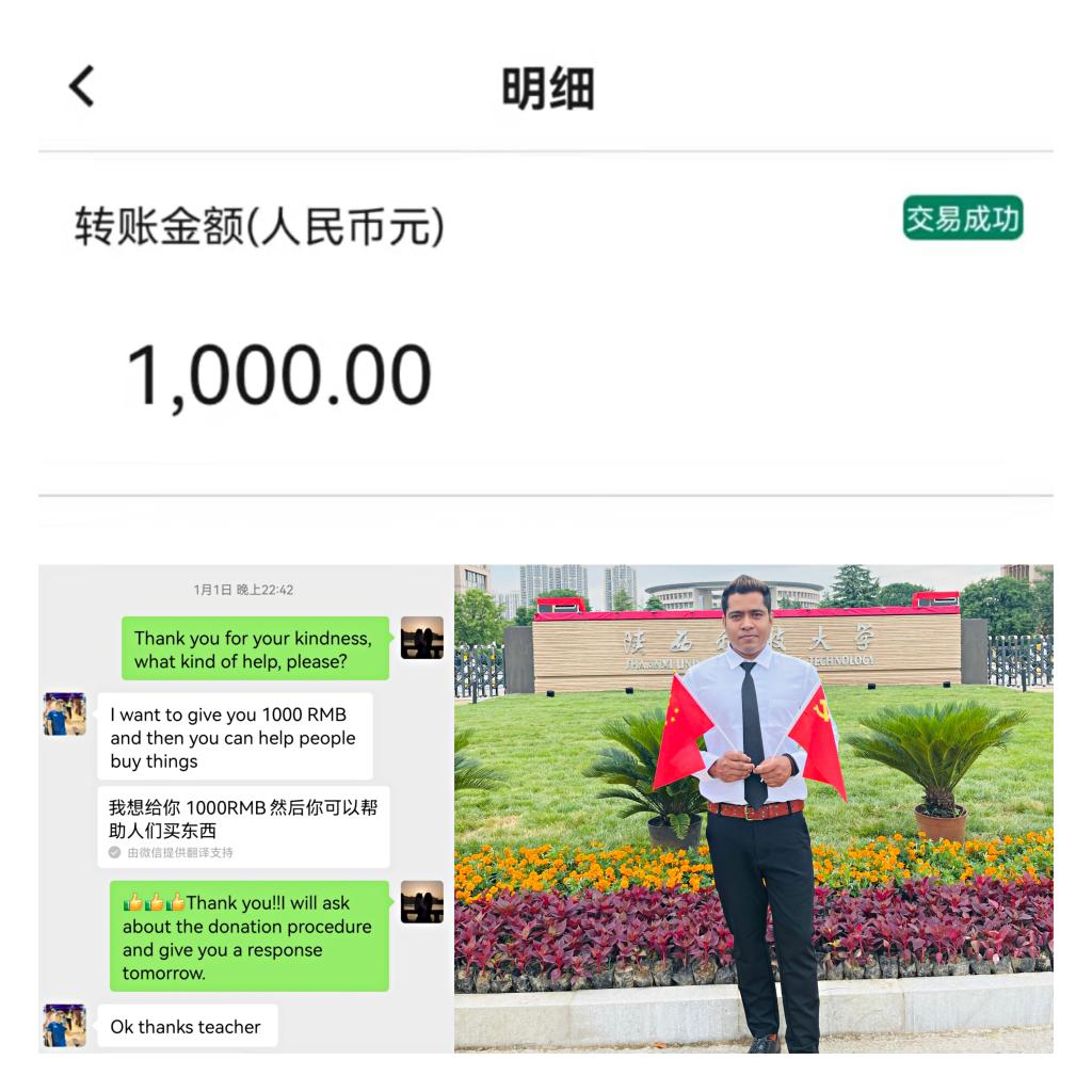 輕工技術(shù)與管理學(xué)院的博士研究生,孟加拉國(guó)的Md Rafikul Islam(拉菲),向?qū)W校捐贈(zèng)了1000元。他說:“陜西科技大學(xué)就像我的家一樣,我希望盡綿薄之力,幫助我的家人們度過難關(guān)”。2018年以來,他在我校攻讀碩士,今年有讀了博士。目前在浙江溫州實(shí)習(xí)。拉菲是心系母校的國(guó)際學(xué)生代表之一,在抗擊疫情的關(guān)鍵時(shí)期,校內(nèi)國(guó)際學(xué)生積極配合,遵守防疫規(guī)定,堅(jiān)持不出門,同心助力戰(zhàn)疫情。他們相信中國(guó)政府,相信陜西科技大學(xué),一定能打贏這次攻堅(jiān)戰(zhàn)。