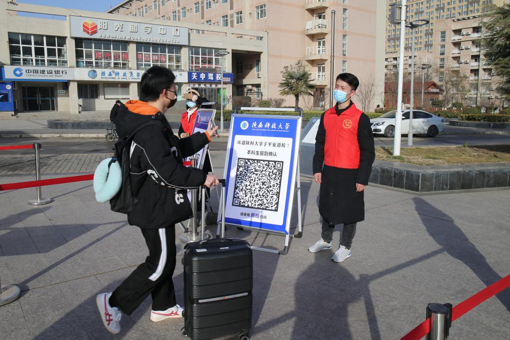 為了保障學生返校工作平穩(wěn)有序,學工部于2月20日發(fā)布2021-2022學年春季學期學生返校通知。返校前,校網(wǎng)絡思政中心通過易班平臺開通本科生返校申請,各學院在認真做好學生返校前14天健康打卡及行動軌跡摸排統(tǒng)計工作的基礎上,要求符合返校條件的學生如實填報出發(fā)地、轉(zhuǎn)車(途經(jīng))站點、交通方式和預計到校時段,并上傳西安市“一碼通”及“通信大數(shù)據(jù)行程卡”綠碼截圖,由輔導員根據(jù)返校要求逐一審批,學生返校真正實現(xiàn)了“碼上辦”,節(jié)約了辦理時間,實現(xiàn)對學生返程信息精準摸排和對學生中的重點人群、中高風險地區(qū)學生的詳細情況掌握,確保學生返校全程可追溯。返校當日,學工部在南北區(qū)大門處按要求設置了返校接待點,學生專用的入校通道設置了測溫區(qū)、行李消殺區(qū)、核酸查驗區(qū)、一碼通行程碼查驗區(qū)、報到確認掃碼區(qū)和臨時觀測點,完成全部流程經(jīng)查驗合格后,學生方可進入公寓報到。從凌晨六點到晚上十點,由校團委精心組織的數(shù)十名志愿者堅持在崗位上,提醒返校學生科學佩戴口罩,有序排隊,避免聚集;學工部、校醫(yī)院、保衛(wèi)處工作人員堅守一線,細致查驗、細心引導,確保學生平安有序進入校園,正式開啟新學期的校園學習生活。