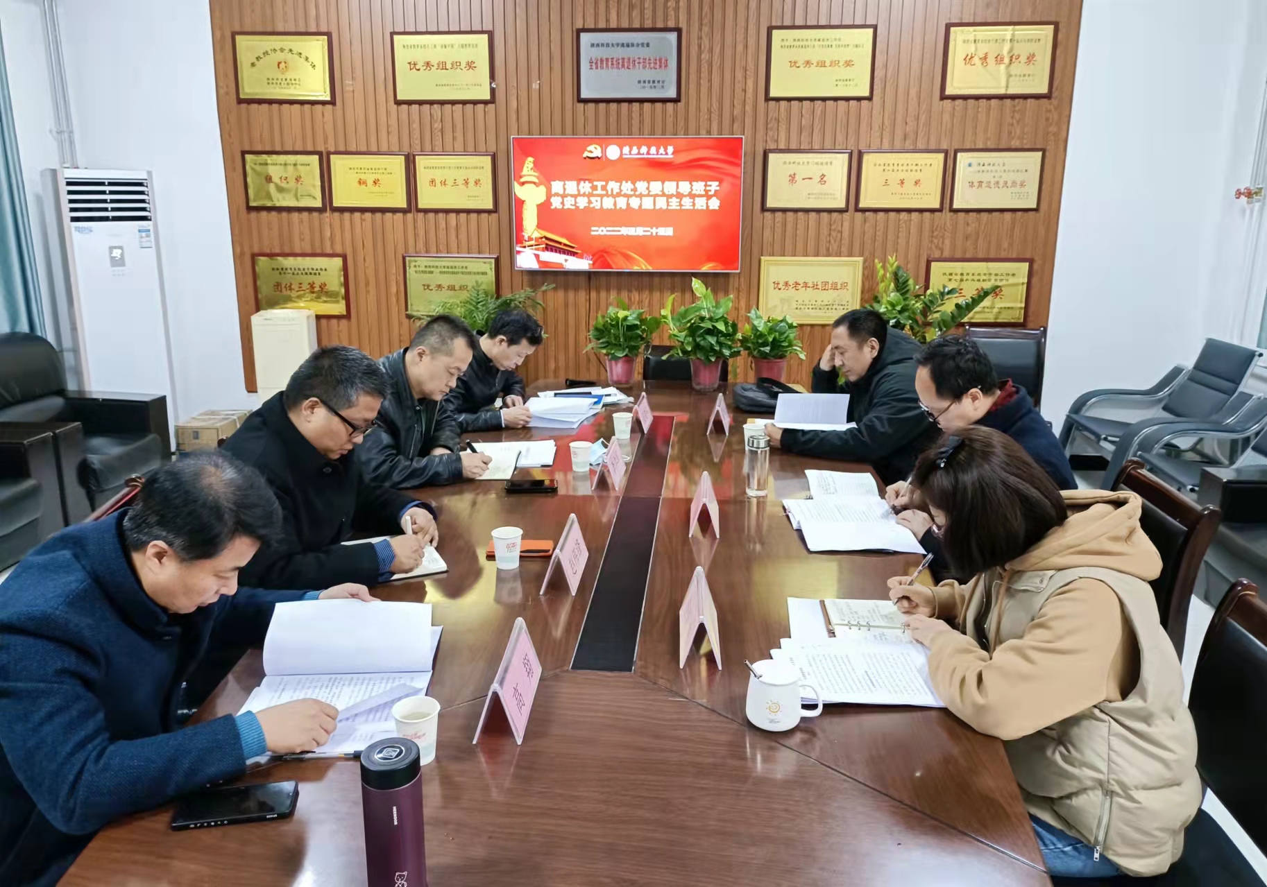 副校長李學軍指導離退休工作處黨委領導班子黨史學習教育專題民主生活會