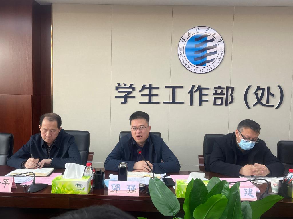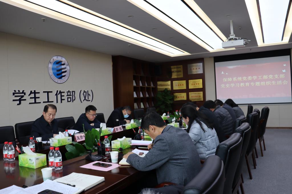 3月23日下午,學工部黨支部召開黨史學習教育組織生活會,校黨委副書記郭強以普通黨員身份參加會議并作指導(dǎo)講話。黨委委員、組織部部長楊建列席會議。保障系統(tǒng)黨委書記王貴平做會議點評。學工部黨支部全體黨員參加會議,會議由支部書記張凱凱主持。