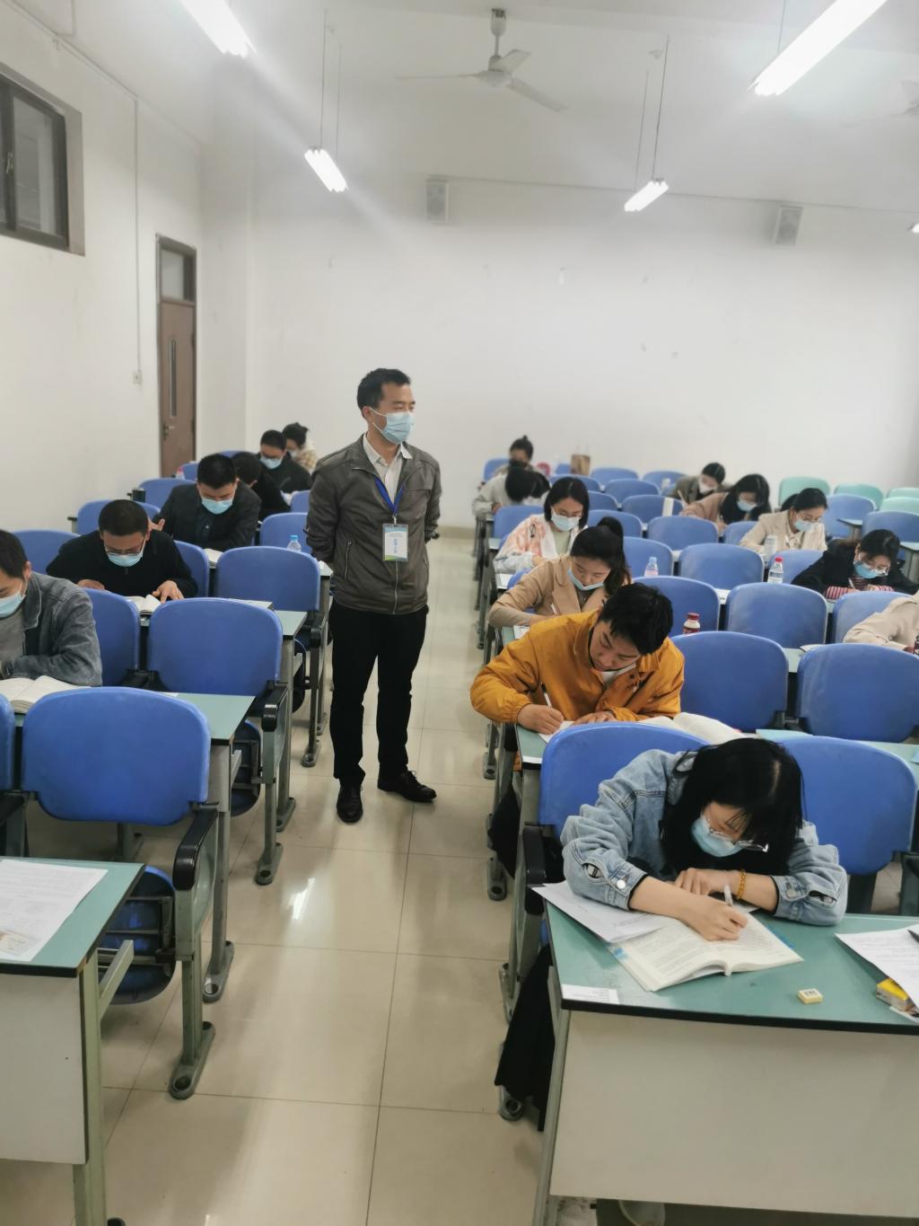 服從屬地管理,嚴格執(zhí)行防控措施。因考試期間疫情形勢嚴峻,為切實保障參考教師及考務(wù)人員的生命安全和身體健康,我校在考試前對所有參考教師進行健康監(jiān)測和軌跡排查,建立參考教師和考務(wù)工作微信群,篩查在校教師與校外居住教師信息,確保所有人員健康狀況符合參考標準,并及時向校防疫辦匯報。要求參考教師本人需就近14天的健康狀況和行程軌跡作出書面承諾,開考前持健康承諾書、進行48小時核酸報告、“健康碼”“行程碼”查驗和體溫測量后方可進入考場,進一步明確細化工作職責(zé)、將責(zé)任落實到人,密切配合做好疫情防控、安全保密等方面的工作,確保本次考試工作安全進行。考試期間,副校長蒲永平及相關(guān)職能部門負責(zé)人深入考場進行現(xiàn)場巡查,要求全體監(jiān)考教師、考務(wù)人員嚴格管理、規(guī)范操作、科學(xué)防控、及時處理突發(fā)事件,為參考教師提供良好的考試環(huán)境。