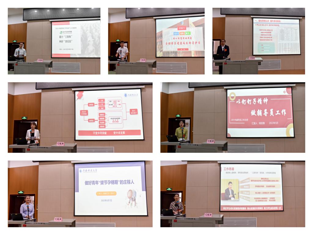 會(huì)上,經(jīng)過學(xué)院初評(píng)推薦的23位候選人結(jié)合實(shí)際工作,圍繞《輔導(dǎo)員職業(yè)能力標(biāo)準(zhǔn)》,聚焦輔導(dǎo)員工作主責(zé)主業(yè)、專業(yè)化職業(yè)化發(fā)展路徑,從工作思路、工作舉措、品牌培育、育人實(shí)效、學(xué)習(xí)研究及工作規(guī)劃等方面進(jìn)行了匯報(bào)交流。