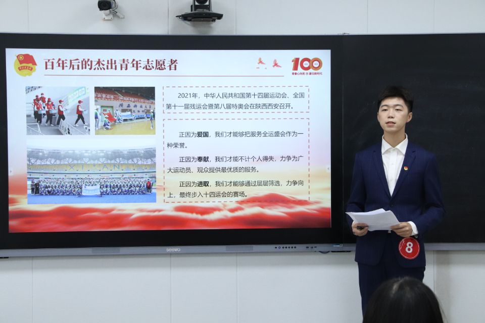 教師團(tuán)干部組決賽采用提交主題微團(tuán)課視頻的方式進(jìn)行,學(xué)生團(tuán)干部組決賽采用微團(tuán)課現(xiàn)場(chǎng)講授的方式進(jìn)行,主要考查專職團(tuán)干和學(xué)生團(tuán)支部書(shū)記對(duì)政策理論學(xué)習(xí)宣傳闡釋能力,對(duì)相關(guān)政策、時(shí)政熱點(diǎn)、學(xué)生特征、學(xué)生成長(zhǎng)成才規(guī)律的教育引導(dǎo)能力。參賽選手圍繞“喜迎二十大、永遠(yuǎn)跟黨走、奮進(jìn)新征程”主題,結(jié)合自身所思所悟,以小見(jiàn)大,以理動(dòng)人。
