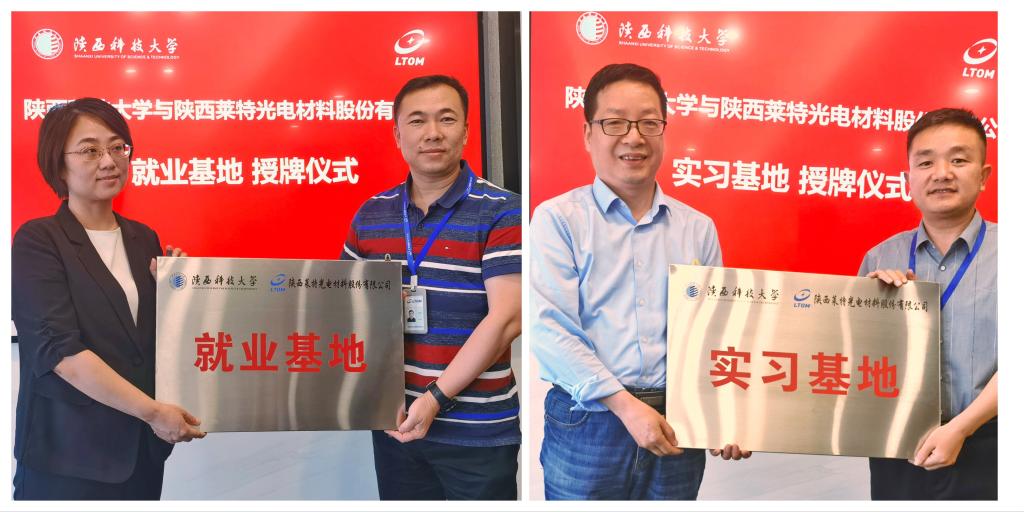電智學院黨委書記呂文華與萊特光電公司副總經(jīng)理高軍、電智學院院長馬令坤與萊特光電公司總工程師馮震分別進行了就業(yè)基地與實習基地的授牌儀式。