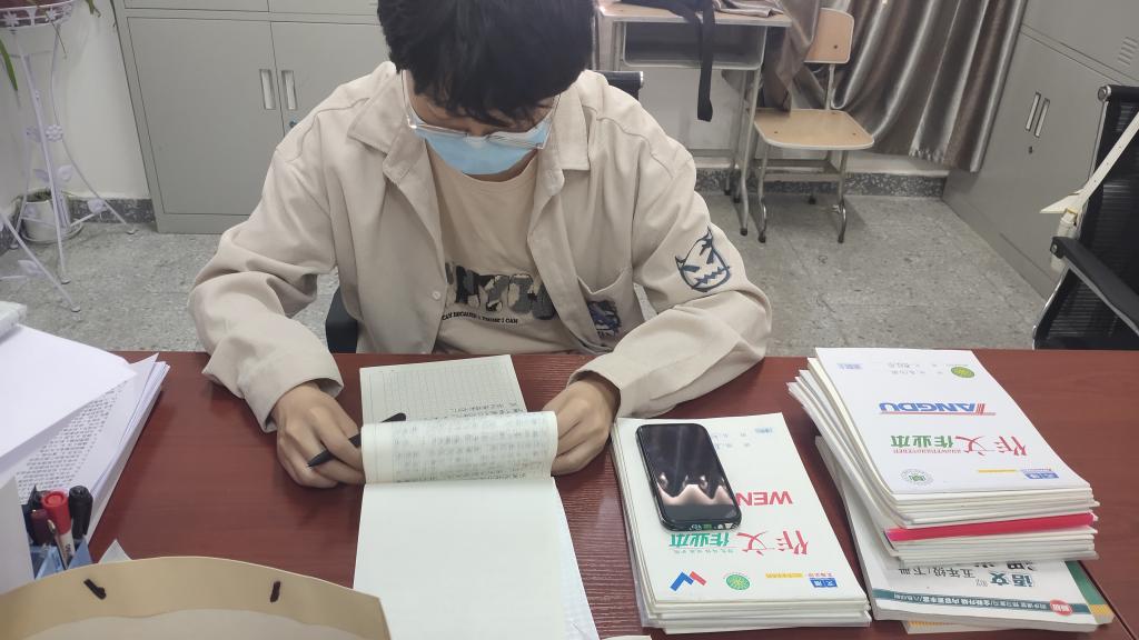 我校第24屆研究生支教團隊長丁泊斐在批改作業(yè)