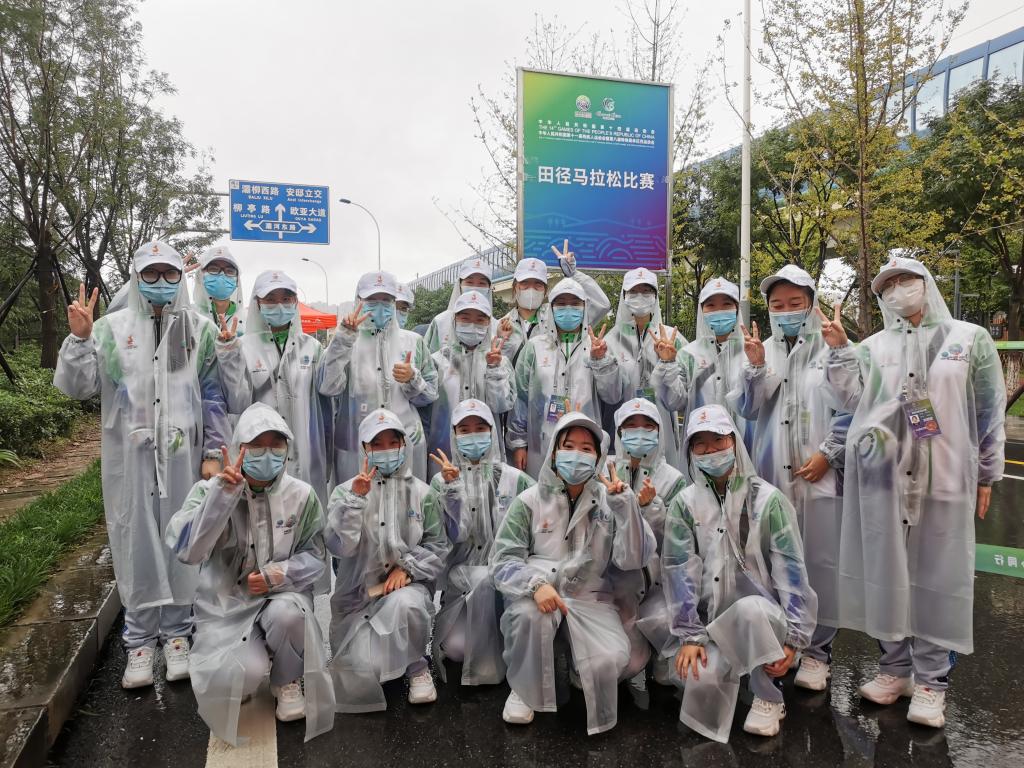 西部計劃志愿者柯玉敏(二排左四)參加十四運田徑馬拉松志愿服務活動