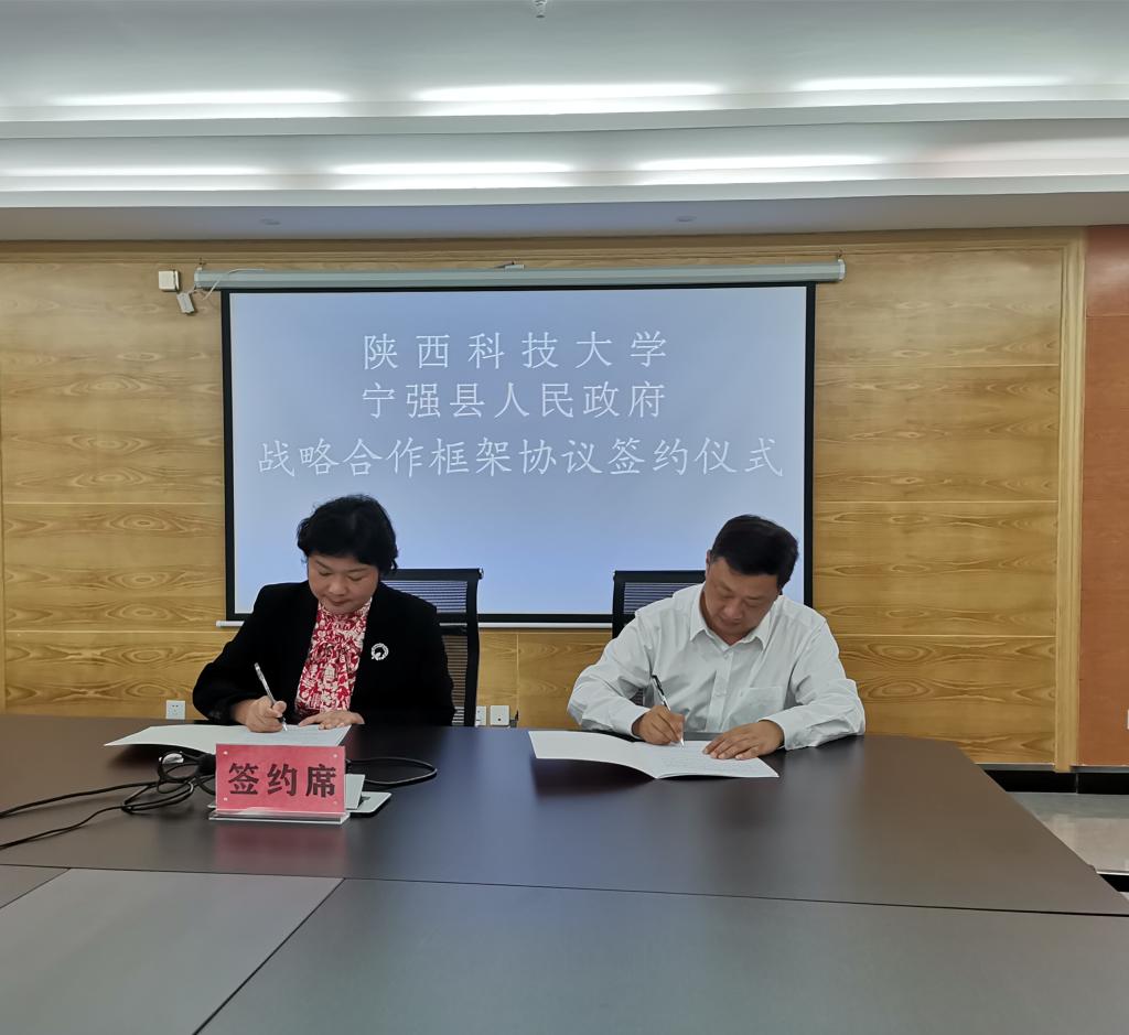 黃劍鋒、楊帆代表雙方簽訂合作協(xié)議,并共同為陜西科技大學寧強技術轉移中心揭牌。