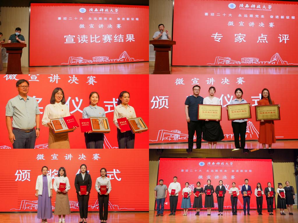 為深入學習貫徹習近平新時代中國特色社會主義思想,引導廣大青年學生永遠跟黨走、奮進新征程,以優(yōu)異成績迎接黨的二十大勝利召開,由黨委研究生工作部、黨委學生工作部、網絡思想政治工作中心和校團委主辦,馬克思主義學院和設計與藝術學院共同承辦的“喜迎二十大、永遠跟黨走、奮進新征程”微宣講比賽,于5月31日在設藝學院小劇場落下帷幕。微宣講決賽全程通過SUST-云科大線上直播。