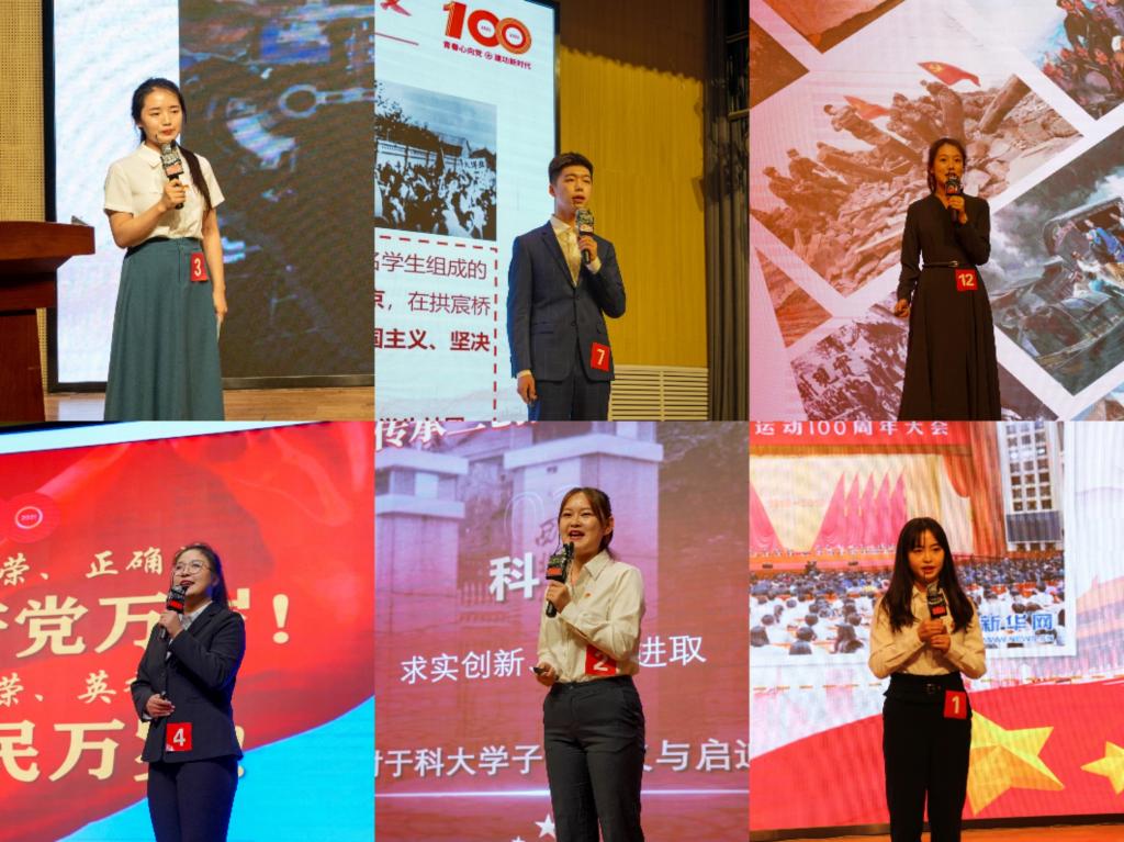 經各學院選拔推薦,來自13個學院的55名同學參加了校級初賽,最終13名同學進入決賽現場展示環(huán)節(jié)。在決賽現場,參賽同學立足學習體悟、結合自身實踐、從不同視角出發(fā),或娓娓道來,或感人至深,或激情滿懷,或引經據典,唱響主旋律、傳播正能量,帶領大家回顧黨團結帶領中國人民取得的偉大成就、孕育的偉大精神及這個過程中涌現的英雄人物,現場氣氛熱烈,線上互動活躍。