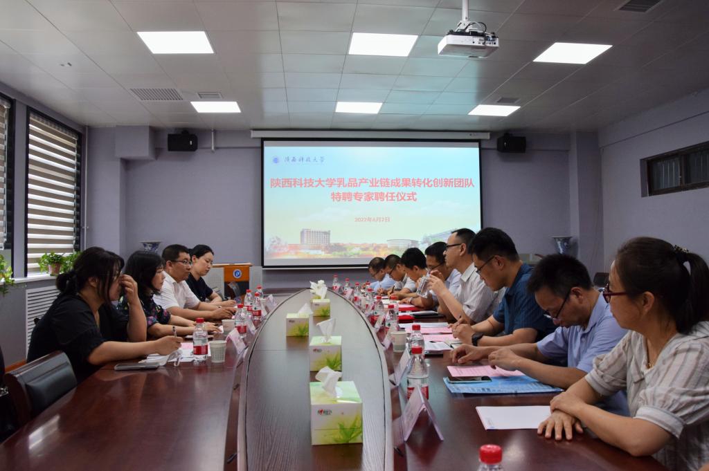 6月2日下午,西安銀橋乳業(yè)(集團(tuán))有限公司副董事長(zhǎng)劉萍、陜西紅星美羚乳業(yè)股份有限公司副總經(jīng)理王建生、銀橋乳業(yè)研發(fā)中心技術(shù)總監(jiān)吳珊一行應(yīng)邀來(lái)到我校食品與生物工程學(xué)院,參加陜西科技大學(xué)乳品產(chǎn)業(yè)鏈成果轉(zhuǎn)化創(chuàng)新團(tuán)隊(duì)特聘專家聘任儀式。我校前沿科學(xué)與技術(shù)轉(zhuǎn)移研究院、食品學(xué)院主要負(fù)責(zé)人以及食品學(xué)院相關(guān)方向教師參加聘任儀式并進(jìn)行座談交流。聘任儀式由食品學(xué)院副院長(zhǎng)(主持工作)李國(guó)梁主持。