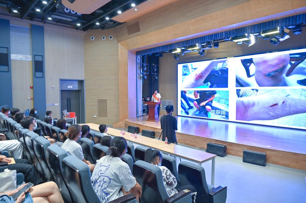 韓紅輝現(xiàn)場講述了他十余年來義務(wù)反扒中發(fā)生的驚心動(dòng)魄故事和他在2021年河南特大暴雨災(zāi)害中跨省搶險(xiǎn)救援的感人事跡,以及他利用周末和節(jié)假日開展多種志愿服務(wù)工作的愛心義舉。面對持刀小偷挺身而出,齊腰洪水中冒險(xiǎn)營救,兒童村里關(guān)愛幫扶……質(zhì)樸的語言、真實(shí)的畫面,使現(xiàn)場的大學(xué)生沉浸在他不平凡的公益人生故事,深切感受到傳承中華民族優(yōu)秀傳統(tǒng)美德就在身邊、好人就在身邊、公益志愿服務(wù)就在身邊。