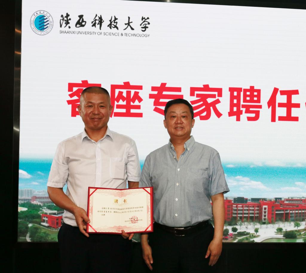 黃劍鋒為陜西省飼料協(xié)會秘書長、陜西秦云農(nóng)產(chǎn)品檢驗(yàn)檢測股份有限公司董事長雷浩頒發(fā)客座專家聘書;陜西省飼料工作總站副站長雷曉軍介紹了陜西行業(yè)情況;陜西農(nóng)產(chǎn)品加工技術(shù)研究院院長助理(主持工作)莫海珍介紹了研究院情況;食品學(xué)院副院長(主持工作)李國梁介紹了學(xué)院相關(guān)科研情況。