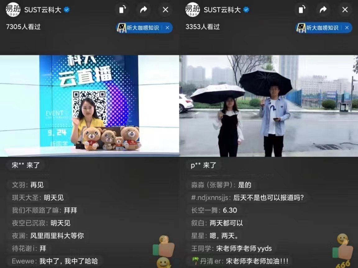 輔導(dǎo)員主播開啟網(wǎng)絡(luò)直播“云游科大”。依托“SUST云科大”微信視頻號,通過主播連線現(xiàn)場的形式,分階段、分區(qū)域帶領(lǐng)鏡頭前的學(xué)生及家長“云游”科大。直播累計吸引7300余人觀看,點(diǎn)贊8萬余次。上線輕應(yīng)用快搭“‘易’眼萬年,筑夢科大”。共設(shè)置10個模塊,包含“世界小,陜科大”“易班知多少”“pick你的學(xué)院”“等內(nèi)容。最終獨(dú)立訪客萬余人次,評論總數(shù)達(dá)18000余條。開通了分階段實(shí)施的新生入學(xué)教育優(yōu)課群,包含校情概述、安全教育、心理知識、職業(yè)生涯規(guī)劃等7個版塊。新生在暑假期間按要求完成相應(yīng)的課程學(xué)習(xí)并進(jìn)行線上測試,測試成績經(jīng)折算后計入入學(xué)教育考試總成績。其中,2021年7月上線的“新人心語”新生入學(xué)教育系列課程入選易班優(yōu)質(zhì)課程資源庫。