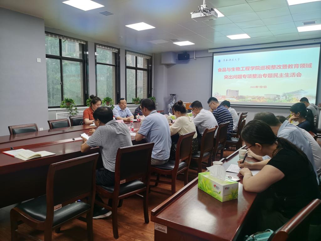 7月5日上午,食品科學(xué)與工程學(xué)院領(lǐng)導(dǎo)班子召開巡視整改暨教育領(lǐng)域突出問題專項(xiàng)整治專題民主生活會。校黨委副書記王道安到會指導(dǎo),校內(nèi)第二指導(dǎo)組成員王淑霞、李靜列席會議。學(xué)院黨委委員、班子成員、辦公室主任、組織員、教工黨支部書記參加會議。會議由食品學(xué)院黨委書記訾榮祿主持。