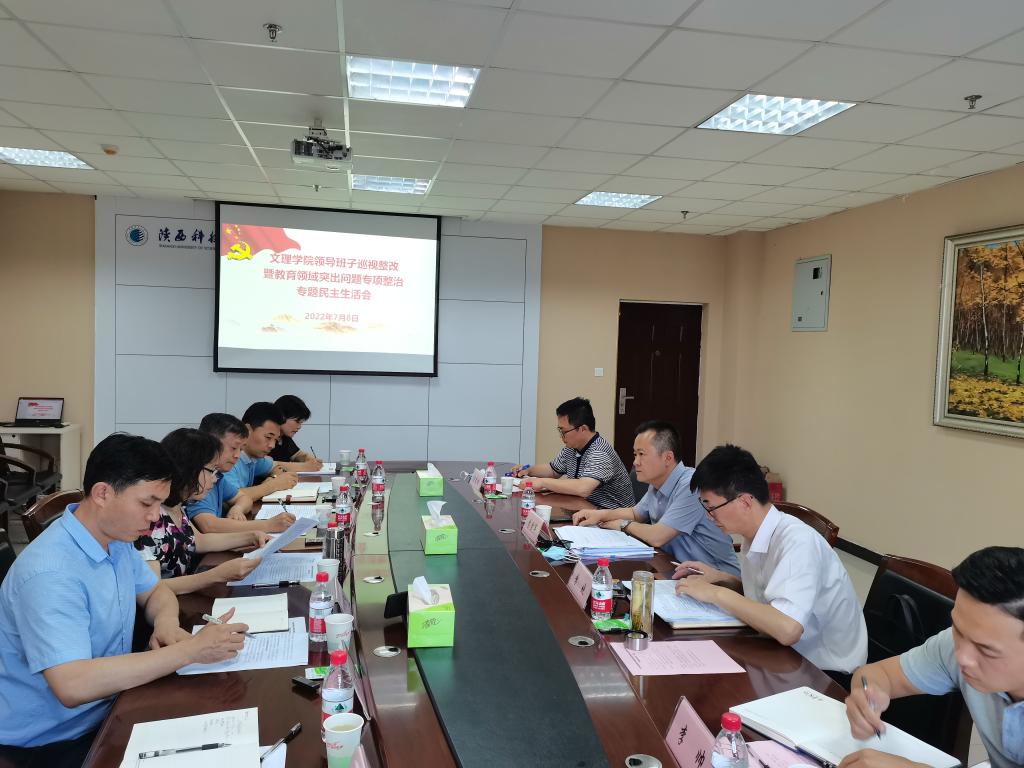 7月8日下午,文理學(xué)院召開領(lǐng)導(dǎo)班子巡視整改暨教育領(lǐng)域突出問題專項(xiàng)整治專題民主生活會(huì),副校長(zhǎng)李學(xué)軍到會(huì)指導(dǎo),校內(nèi)第三指導(dǎo)組成員李曉、陳李斌、李帥出席會(huì)議。文理學(xué)院領(lǐng)導(dǎo)班子成員、黨委委員、教工黨支部書記、系主任參加會(huì)議,會(huì)議由院黨委書記陳源梅主持。