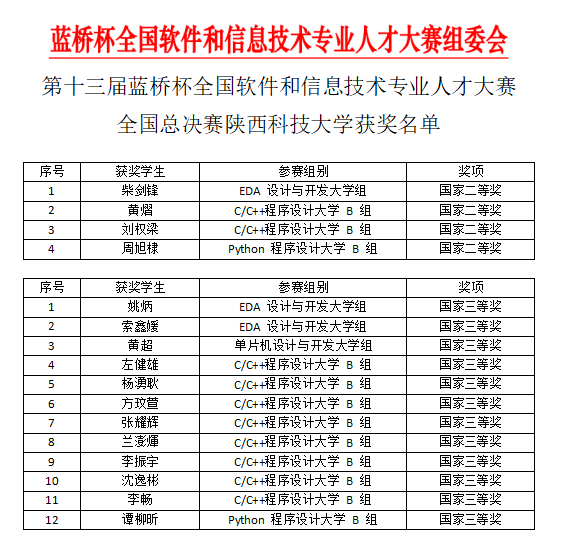 近日,第十三屆藍橋杯全國軟件和信息技術(shù)專業(yè)人才大賽全國總決賽獲獎名單發(fā)布,我校學生共獲國家二等獎4項、國家三等獎12項、優(yōu)秀獎19項。學校獲優(yōu)秀組織單位。我校作為賽點之一承辦了本次大賽個人賽全國總決賽,這也是我校首次承辦計算機類學科競賽全國性比賽。
