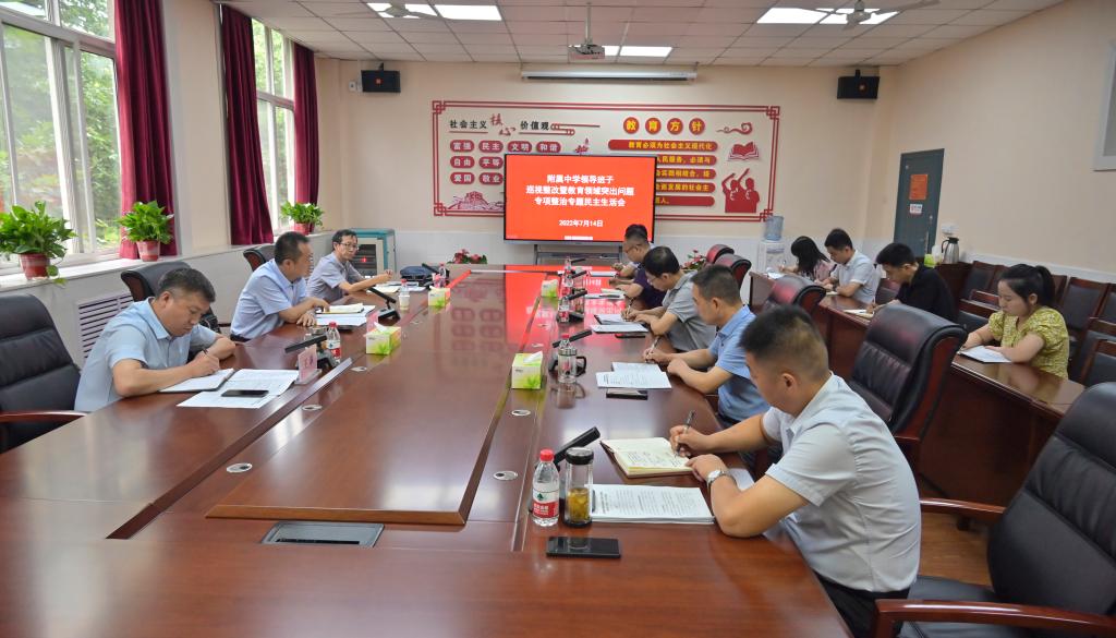 根據(jù)校黨委的統(tǒng)一安排,7月14日下午,附屬中學(xué)召開領(lǐng)導(dǎo)班子巡視整改暨教育領(lǐng)域突出問題專項整治專題民主生活會。副校長李學(xué)軍到會指導(dǎo),校內(nèi)第五指導(dǎo)組組長張曉東出席會議,附屬中學(xué)領(lǐng)導(dǎo)班子成員、黨委委員參加會議,教工黨支部書記、組織員列席會議。會議由附屬中學(xué)黨委書記、校長王琪主持。