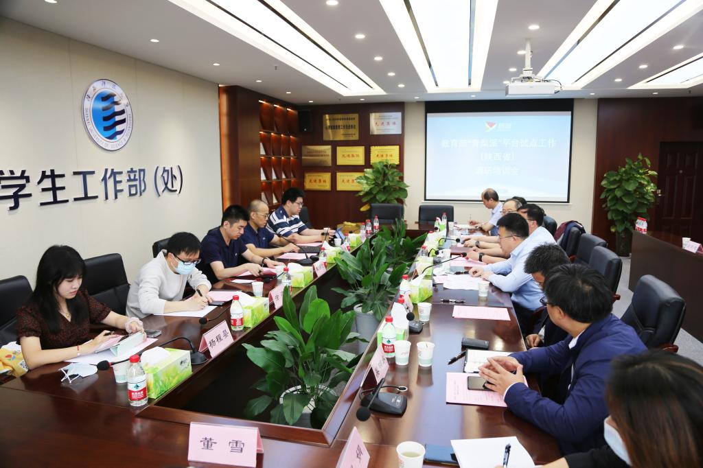 郭強(qiáng)在致辭中代表學(xué)校黨委對(duì)教育部“青梨派”平臺(tái)調(diào)研人員一行表示熱烈歡迎,對(duì)教育部易班發(fā)展中心、省委教育工委長(zhǎng)期給予學(xué)校網(wǎng)絡(luò)思想政治工作的關(guān)心支持表示衷心感謝。郭強(qiáng)從健全體制機(jī)制、優(yōu)化資源保障、建強(qiáng)載體支撐三個(gè)方面介紹了學(xué)校積極推動(dòng)思想政治工作傳統(tǒng)優(yōu)勢(shì)同信息技術(shù)高度融合,做大做強(qiáng)網(wǎng)絡(luò)育人陣地的有關(guān)做法,表示學(xué)校將搶抓機(jī)遇、乘勢(shì)而上,篤行實(shí)干、銳意創(chuàng)新。一是從“講政治”的高度搭好平臺(tái),深化試點(diǎn)。嚴(yán)格按照上級(jí)部門(mén)的決策部署,加快完善平臺(tái)構(gòu)建,全力保障平臺(tái)順利有序運(yùn)行,力爭(zhēng)為高校推廣運(yùn)用“青梨派”平臺(tái)提供可復(fù)制、可借鑒、可操作的實(shí)踐經(jīng)驗(yàn)。二是從“大思政”的廣度建強(qiáng)平臺(tái),啟智潤(rùn)心。對(duì)內(nèi)加大政策、資源等投入,對(duì)外爭(zhēng)取省內(nèi)更多試點(diǎn)兄弟院校支持,有機(jī)融合線(xiàn)上與線(xiàn)下、“思政小課堂”與“社會(huì)大課堂”,以?xún)?yōu)質(zhì)網(wǎng)絡(luò)文化作品把握“大趨勢(shì)”、回應(yīng)“大問(wèn)題”、講透“大道理”,實(shí)現(xiàn)溝通心靈、啟智潤(rùn)心、激揚(yáng)斗志。三是從“抓落實(shí)”的力度用好平臺(tái),引領(lǐng)發(fā)展。充分整合全省高校優(yōu)質(zhì)網(wǎng)絡(luò)資源,積極發(fā)揮平臺(tái)在優(yōu)化思政課教學(xué)設(shè)計(jì)、豐富思政課教學(xué)內(nèi)容、創(chuàng)新思政課教學(xué)模式等方面的積極作用,以扎實(shí)成效為陜西高校網(wǎng)絡(luò)思政建設(shè)蓄勢(shì)賦能,進(jìn)一步推動(dòng)全省高校思政工作實(shí)現(xiàn)內(nèi)涵式、高質(zhì)量、可持續(xù)發(fā)展,開(kāi)啟“大思政課”鑄魂育人新篇章。