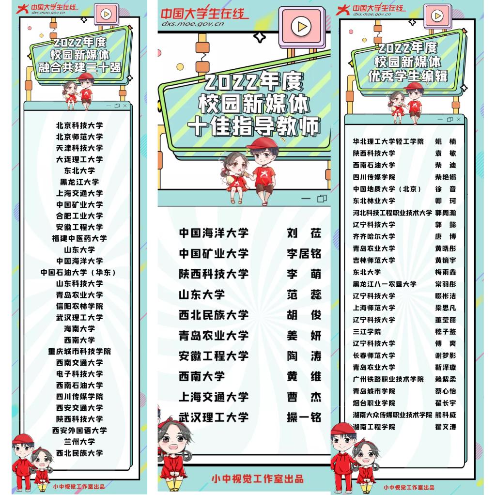 12月23日,由教育部主導(dǎo)并推動的網(wǎng)絡(luò)文化建設(shè)與主題教育平臺“中國大學(xué)生在線”2022年度校園新媒體表彰名單公布,我校蟬聯(lián)“校園新媒體融合共建三十強(qiáng)高?!保W(wǎng)絡(luò)思想政治工作中心主任李萌再次獲得“校園新媒體十佳指導(dǎo)教師”榮譽稱號,經(jīng)濟(jì)與管理學(xué)院學(xué)生袁敏獲評“校園新媒體優(yōu)秀學(xué)生編輯”。