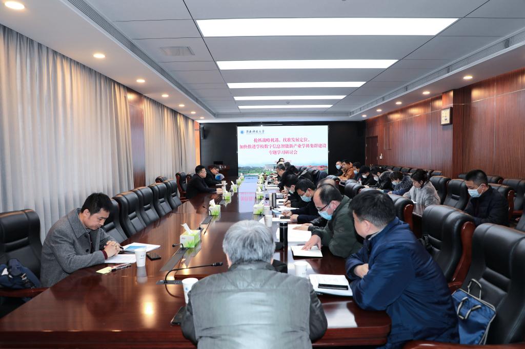 2月22日上午,“搶抓發(fā)展機(jī)遇,找準(zhǔn)發(fā)展定位,加快推進(jìn)數(shù)字信息智能新產(chǎn)業(yè)學(xué)科集群建設(shè)”專題學(xué)習(xí)研討會(huì)在逸夫樓506會(huì)議室召開,校黨委副書記郭強(qiáng)出席并主持會(huì)議。電氣與控制工程學(xué)院、電子信息與人工智能學(xué)院、數(shù)學(xué)與數(shù)據(jù)科學(xué)學(xué)院、經(jīng)濟(jì)與管理學(xué)院、設(shè)計(jì)與藝術(shù)學(xué)院(絲路文化與傳播學(xué)院)、環(huán)境科學(xué)與工程學(xué)院院長和分管學(xué)科科研的副院長,以及發(fā)展規(guī)劃處、學(xué)科辦、科技處、前沿院、網(wǎng)絡(luò)中心、校友會(huì)等職能部門有關(guān)負(fù)責(zé)同志參加會(huì)議。