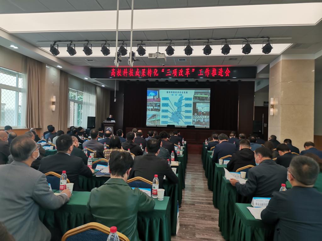 3月28日下午,陜西高校科技成果轉(zhuǎn)化“三項改革”工作會在西安石油大學(xué)舉行,省政協(xié)副主席、省教育廳副廳長高嶺,省內(nèi)74所“三項改革”試點(diǎn)高校分管校領(lǐng)導(dǎo)參加,黃劍鋒出席大會并作“三項改革”經(jīng)驗交流發(fā)言。
