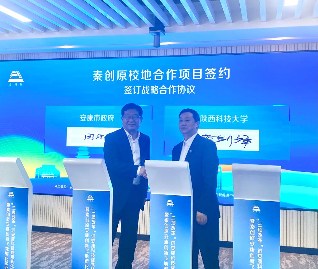 會(huì)上,黃劍鋒與安康市副市長(zhǎng)周康成簽訂戰(zhàn)略合作協(xié)議,雙方未來(lái)將重點(diǎn)在富硒食品、新型材料、毛絨玩具、電子信息、數(shù)字經(jīng)濟(jì)等領(lǐng)域開(kāi)展科技創(chuàng)新、人才培養(yǎng)、戰(zhàn)略咨詢的全方位合作。在簽約環(huán)節(jié),我校陳雪峰教授與安康漢陰華曄植物藥業(yè)公司駐秦創(chuàng)原首席代表朱謙簽訂“有機(jī)黑豆蛋白、黑豆肽原料的制備技術(shù)和應(yīng)用研究”項(xiàng)目協(xié)議。路演環(huán)節(jié),我校曹云剛副教授圍繞“低鈉無(wú)磷”綠色健康肉制品生產(chǎn)技術(shù)進(jìn)行了現(xiàn)場(chǎng)路演發(fā)布。后期我校將遴選一批增長(zhǎng)性好、科技含量高的成果優(yōu)先在安康市落地,為安康市科技創(chuàng)新發(fā)展貢獻(xiàn)科大力量。