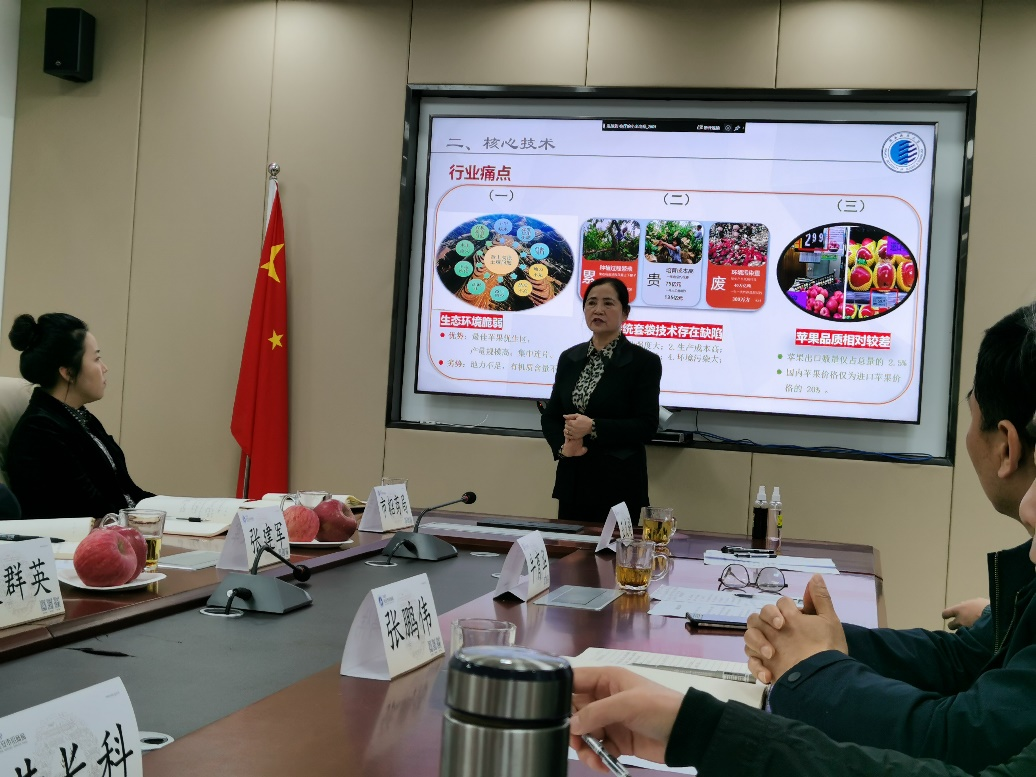 座談會(huì)上,張鵬偉介紹了學(xué)校的發(fā)展歷程以及近年來(lái)學(xué)校在科技成果轉(zhuǎn)化方面取得的成績(jī),表示學(xué)校將積極推薦可轉(zhuǎn)化科技成果在延安市落地。牛育華教授就“蘋(píng)果面膜——一種改變農(nóng)業(yè)種植面貌的關(guān)鍵技術(shù)”及“煤矸石高值化利用技術(shù)”進(jìn)行了技術(shù)成果展示及推廣情況介紹。雙方分別就成果轉(zhuǎn)化、項(xiàng)目落地、發(fā)展建設(shè)進(jìn)行了深入交流。吳群英表示陜西科技大學(xué)在科技攻關(guān)、成果轉(zhuǎn)化方面與延安市有著良好的合作基礎(chǔ),希望圍繞“蘋(píng)果面膜”這種改變農(nóng)業(yè)種植面貌的關(guān)鍵技術(shù),迭代發(fā)展“蘋(píng)果面膜”系列產(chǎn)品,以此推動(dòng)延安蘋(píng)果產(chǎn)業(yè)的轉(zhuǎn)型升級(jí),實(shí)現(xiàn)“果業(yè)強(qiáng),果鄉(xiāng)美,果農(nóng)富”的目標(biāo)?!懊喉肥咧祷眉夹g(shù)”要按照“全產(chǎn)業(yè)鏈、全承載”的路線,入駐延安秦創(chuàng)原平臺(tái),落地延安高新技術(shù)產(chǎn)業(yè)開(kāi)發(fā)區(qū),實(shí)現(xiàn)雙方互利共贏、共同發(fā)展。