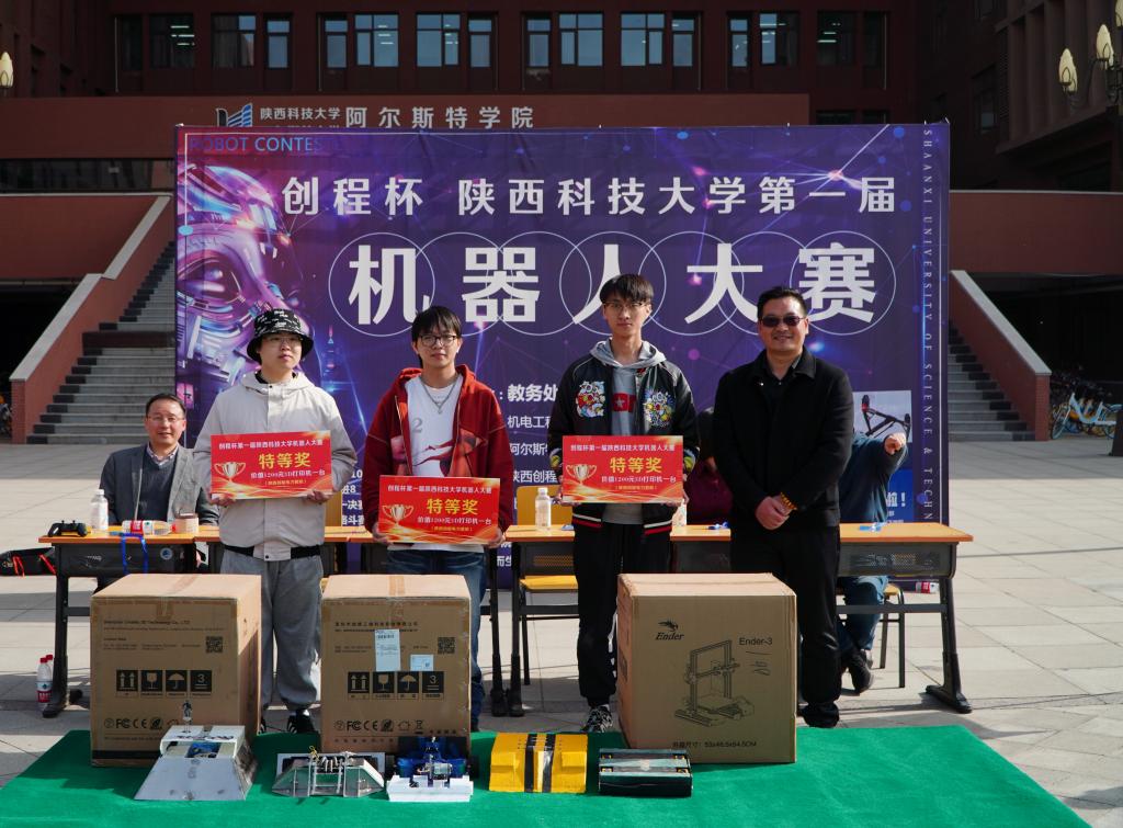 為激勵(lì)科大青年的創(chuàng)新意識(shí)和實(shí)踐精神,“創(chuàng)程杯”陜西科技大學(xué)首屆機(jī)器人大賽于4月8日?qǐng)A滿落幕。大賽由教務(wù)處主辦,機(jī)電工程學(xué)院(智能制造與機(jī)器人工程學(xué)院)和阿爾斯特學(xué)院聯(lián)合承辦,校友會(huì)大力支持,陜西創(chuàng)程電力開發(fā)有限公司冠名贊助,北京地平線機(jī)器人技術(shù)研發(fā)有限公司、機(jī)器人工程專業(yè)教研室、校北斗機(jī)器人協(xié)會(huì)提供技術(shù)支持,校友總會(huì)辦公室主任殷立雄,教務(wù)處副處長(zhǎng)邵亮,機(jī)電學(xué)院副院長(zhǎng)袁越錦,我校校友、陜西創(chuàng)程電力開發(fā)有限公司董事長(zhǎng)唐秸(管理2000級(jí))、總經(jīng)理張政(機(jī)電2000級(jí))等嘉賓現(xiàn)場(chǎng)指導(dǎo)。