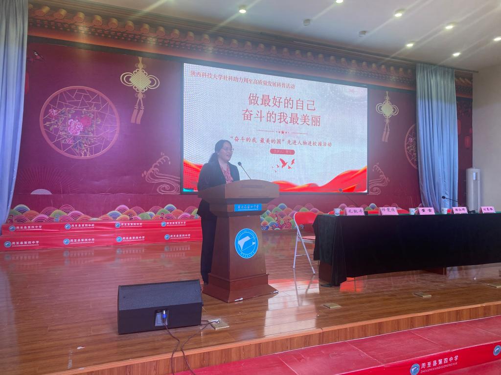 4月14日,由我校黨委副書記郭強(qiáng)總體負(fù)責(zé)、設(shè)計(jì)與藝術(shù)學(xué)院(絲路文化與傳播學(xué)院)馬立軍教授主持的陜西科技大學(xué)社科助力周至高質(zhì)量發(fā)展科普項(xiàng)目“繼承和弘揚(yáng)優(yōu)秀傳統(tǒng)文化”團(tuán)隊(duì)開展活動(dòng)。馬立軍教授應(yīng)周至縣文化和旅游局邀請(qǐng)赴周至縣文化館做了題名為《中國(guó)古典詩(shī)詞鑒賞》的專題講座。周至縣文旅局所屬文化館、圖書館、文學(xué)藝術(shù)界聯(lián)合會(huì)等單位干部職工以及三區(qū)人才文化工作者等80余人參加了講座。4月17日,由校黨委副書記郭強(qiáng)總體負(fù)責(zé)、馬克思主義學(xué)院教師范昕主持的陜西科技大學(xué)社科助力周至高質(zhì)量發(fā)展科普項(xiàng)目“新時(shí)代大力弘揚(yáng)中國(guó)精神的重要意義”宣講團(tuán)隊(duì)開展科普活動(dòng),范昕應(yīng)周至縣廣濟(jì)鎮(zhèn)黨委邀請(qǐng),赴周至縣廣濟(jì)鎮(zhèn)開展理論宣講,做了題為《新時(shí)代基層黨組織大力弘揚(yáng)中國(guó)精神》的專題報(bào)告。周至縣廣濟(jì)鎮(zhèn)黨委全體班子成員、機(jī)關(guān)干部、村支部書記、駐村第一書記參加報(bào)告會(huì)。同日,由校黨委副書記郭強(qiáng)總體負(fù)責(zé)、網(wǎng)絡(luò)思想政治工作中心主持負(fù)責(zé)的陜西科技大學(xué)社科助力周至高質(zhì)量發(fā)展科普項(xiàng)目“‘奮斗的我,最美的國(guó)’先進(jìn)人物進(jìn)校園”團(tuán)隊(duì)開展科普宣傳活動(dòng),我校后勤集團(tuán)職工韓紅輝、網(wǎng)絡(luò)思政中心副主任董雪受邀赴周至縣第四中學(xué)進(jìn)行宣講。周至縣教育科學(xué)技術(shù)局相關(guān)人員、周至縣第四中學(xué)校領(lǐng)導(dǎo)班子參加報(bào)告會(huì)。