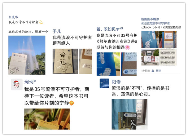 守護不可,流浪的書再出發(fā)。為創(chuàng)新閱讀推廣形式,拓展閱讀推廣路徑,圖書館聯(lián)合大學(xué)生融媒體中心舉辦第二屆“流浪的書”活動。今年4月份,有23本新書又開啟流浪模式(配套流浪規(guī)則),通過圖書館兩位代言人對活動的宣傳,由23位熱愛閱讀有責(zé)任心的書籍守護者全程負(fù)責(zé)書及其配套手冊的傳遞,有保障地完成書籍的流浪之旅,用新穎的形式吸引更多的讀者加入閱讀的隊伍。