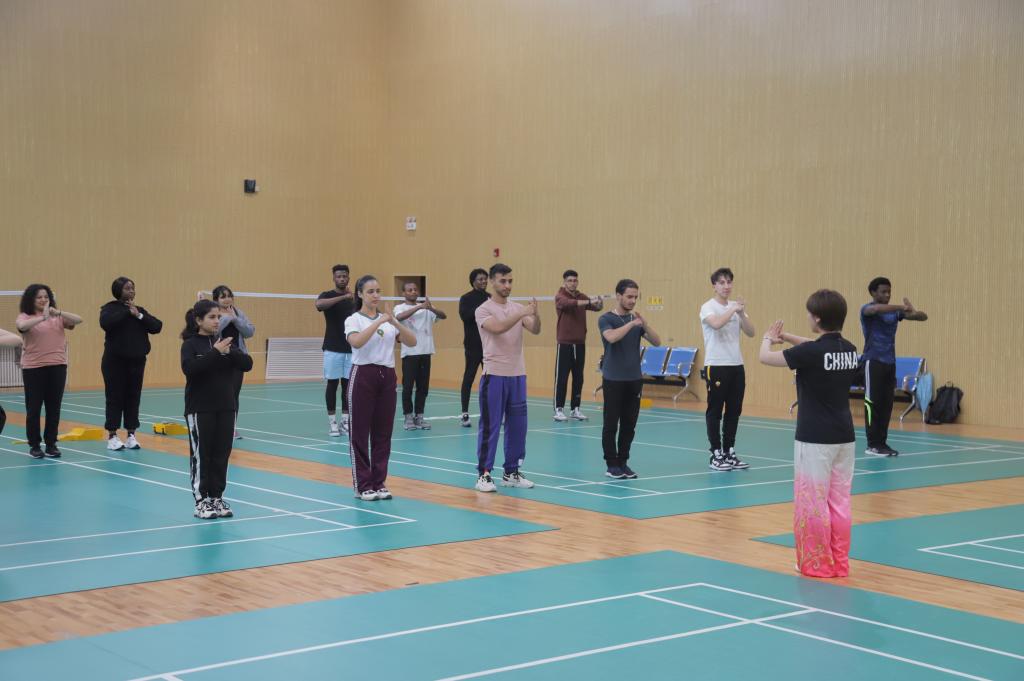 “左腳開立,兩臂前舉,屈腿按掌,野馬分鬃。”在我校文體館中,留學生們正跟著老師一招一式地打著太極拳。為進一步傳播中國傳統(tǒng)文化,增強學生體質(zhì),培養(yǎng)學生的業(yè)余愛好,沉浸式感受中國傳統(tǒng)體育文化之美。今年3月份起,學校為來自意大利、摩洛哥、加納、津巴布韋、巴基斯坦等國家的20余名碩士及博士留學生首次開設《中國傳統(tǒng)體育》課程。